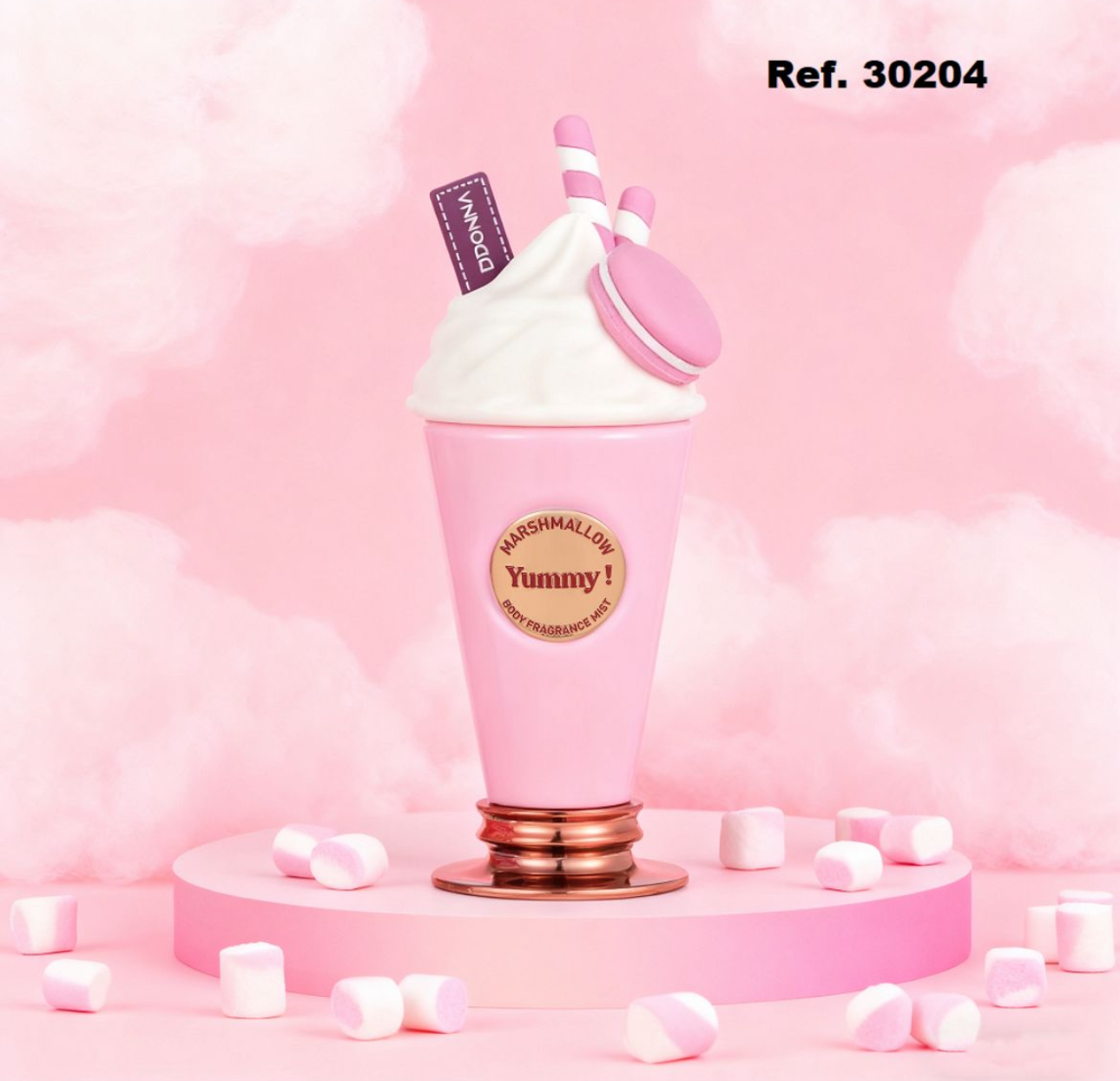 Un perfume corporal tan dulce como un malvavisco. Su fragancia suave y esponjosa encanta a todas mientras su diseño en forma de batido rosa convierte este body mist en un accesorio irresistible. ¡Ideal para regalar !